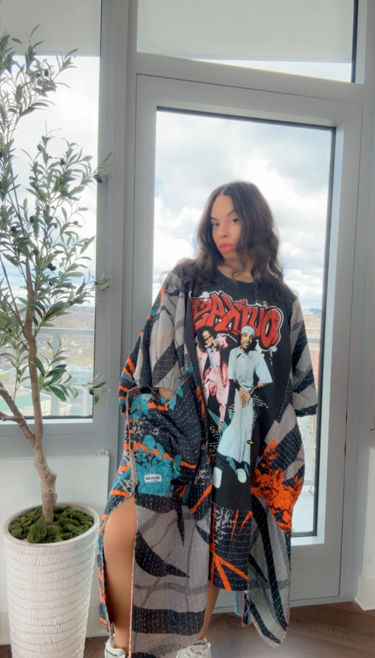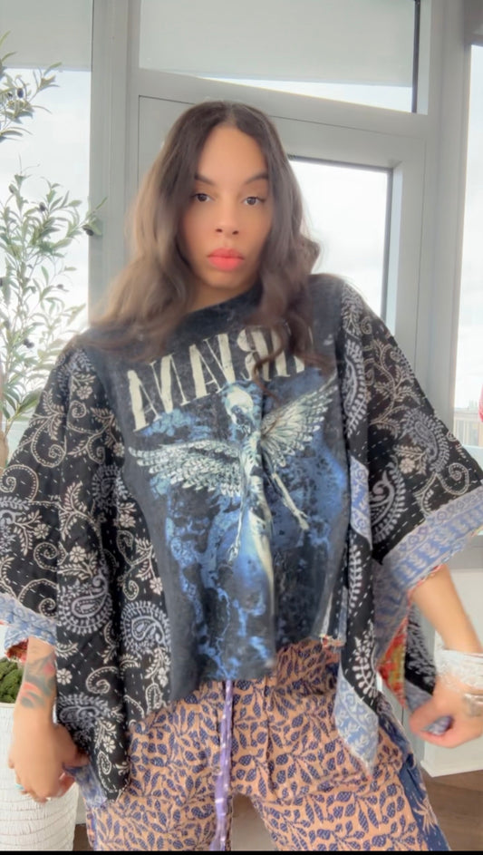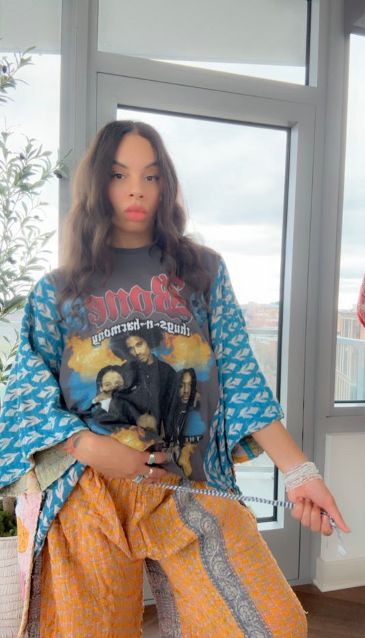 ** Bone Thugs N Harmony Cropped Kantha Band Tee Poncho