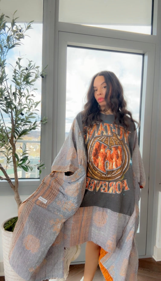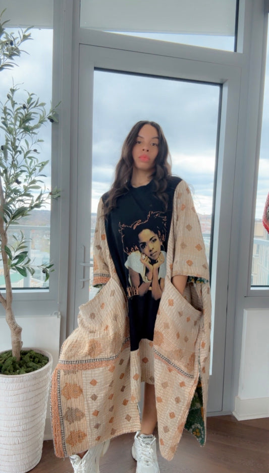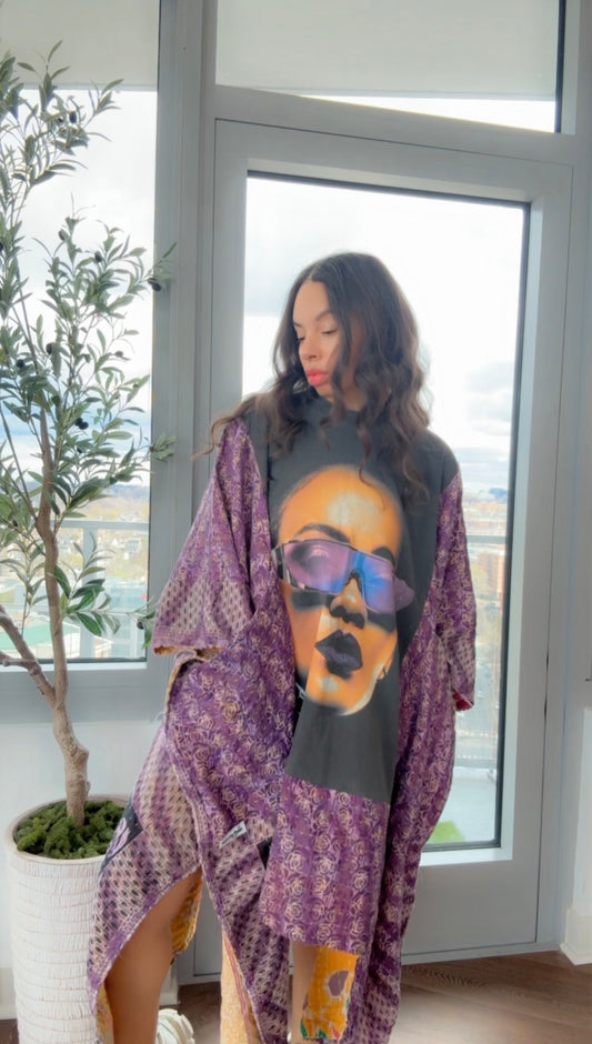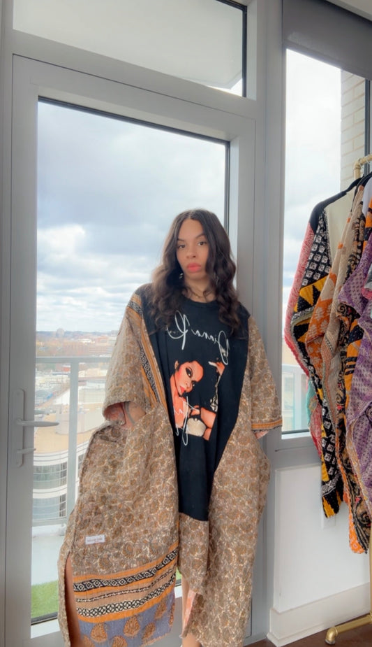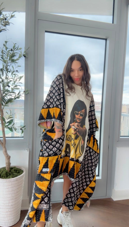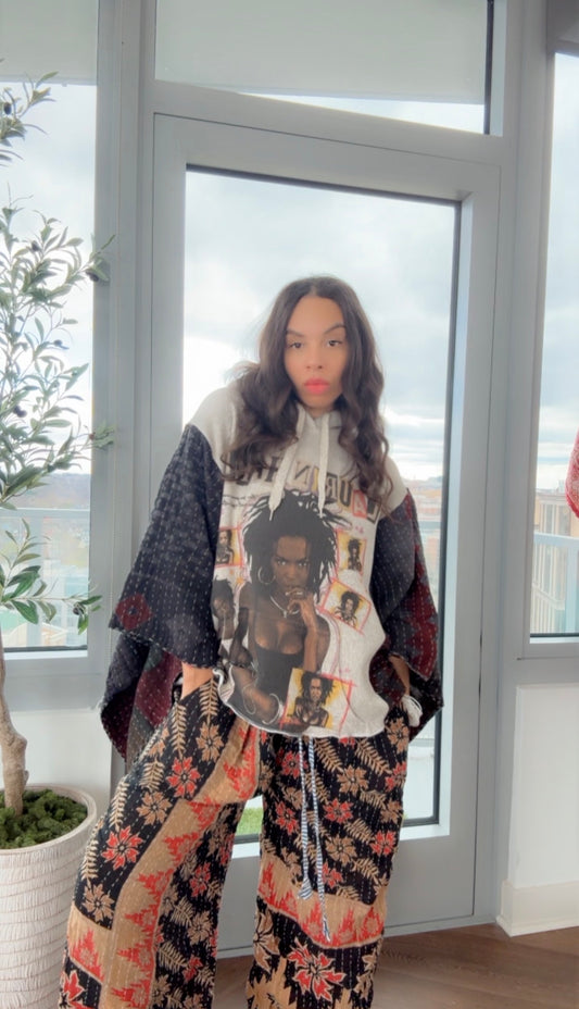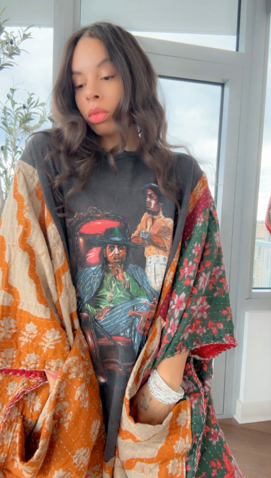 ** Lauryn Hill Hooded (fleece) Hand Dyed Kantha Band Tee Poncho