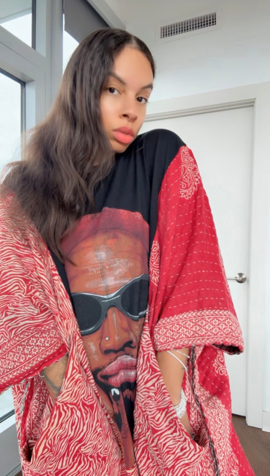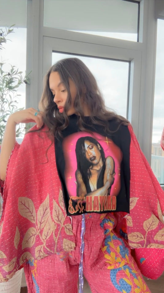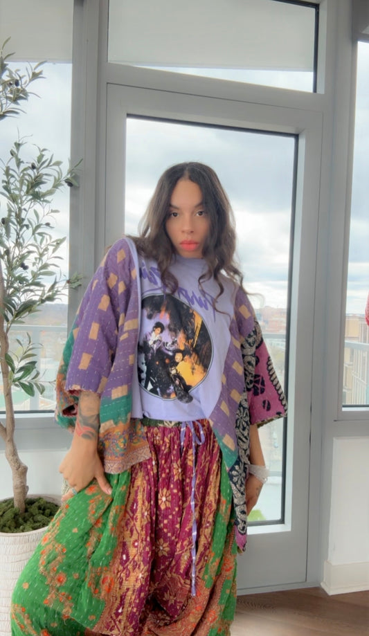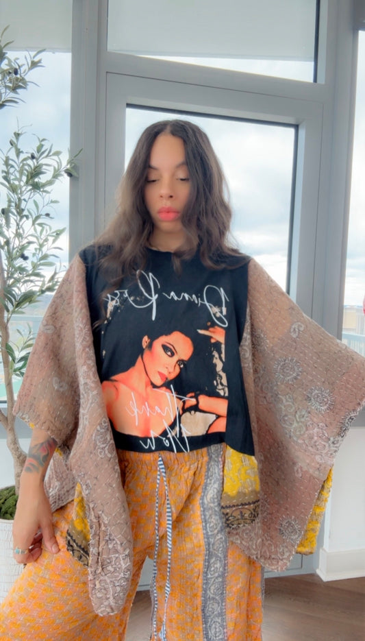 ** Diana Ross Cropped Kantha Band Tee Poncho