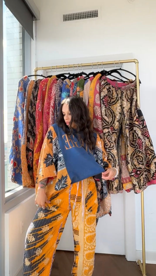 ** Aaliyah Cropped Kantha Band Tee Poncho