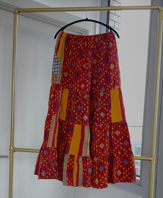 ** Three Tiered Reversible Kantha Wide Leg Pant