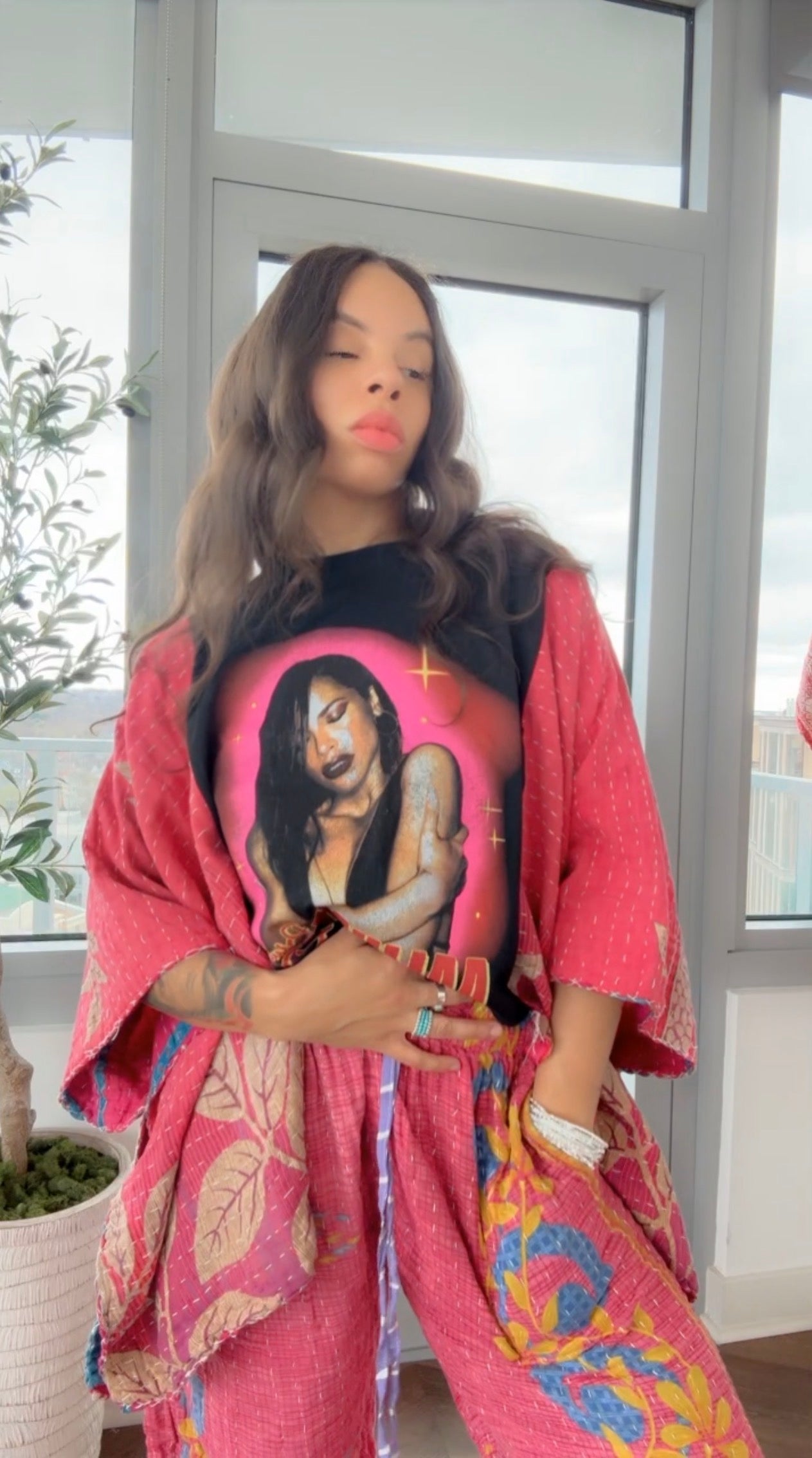 ** Aaliyah Cropped Kantha Band Tee Poncho