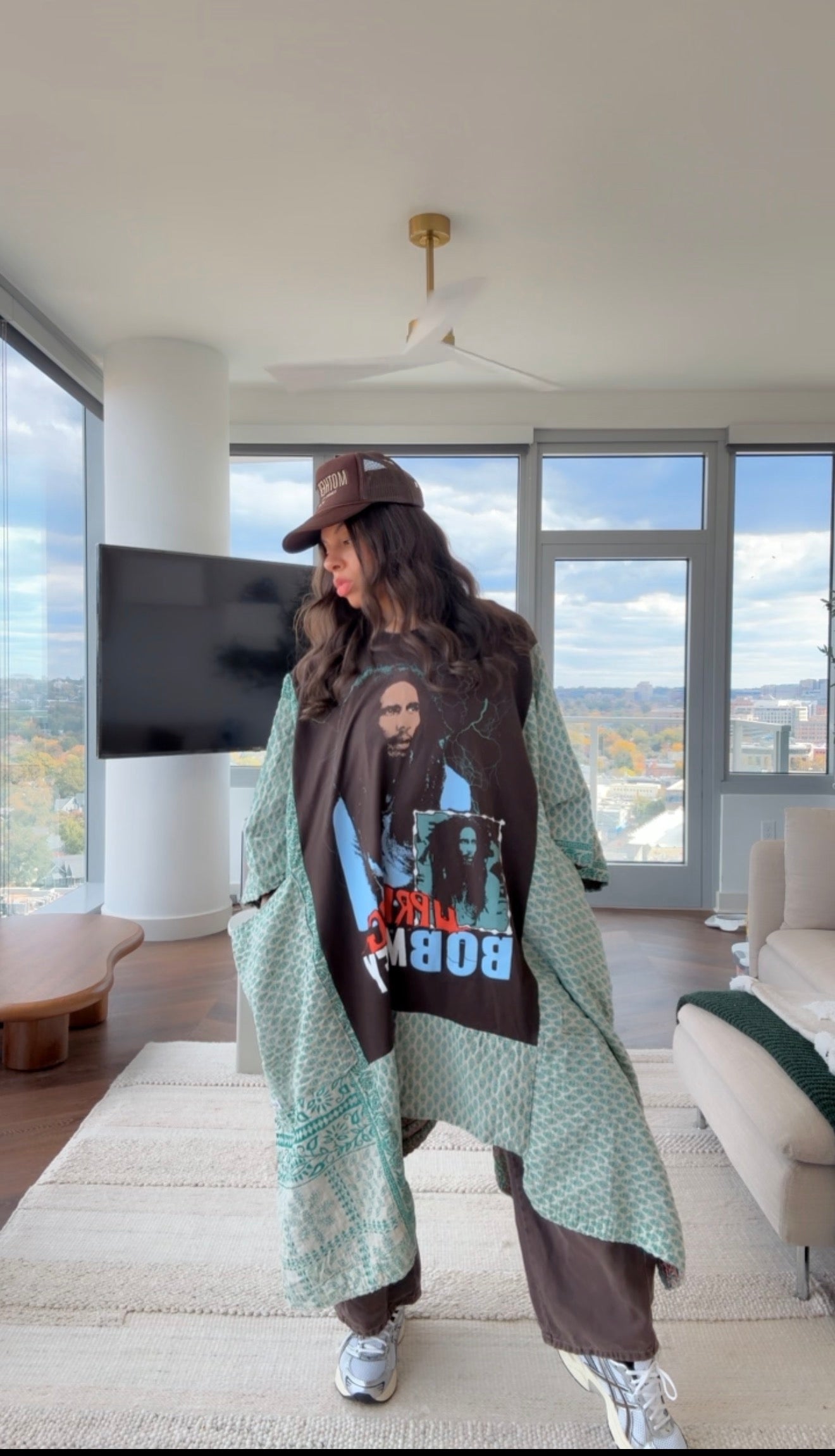 Each Kantha Band Tee Muu is a one-of-a-kind creation, handcrafted by combining iconic band tees with hand-stitched Kantha quilts. Designed for effortless style and ultimate comfort, this piece is a bold blend of edgy and earthy — perfect for those who want to stand out while keeping it laid-back.