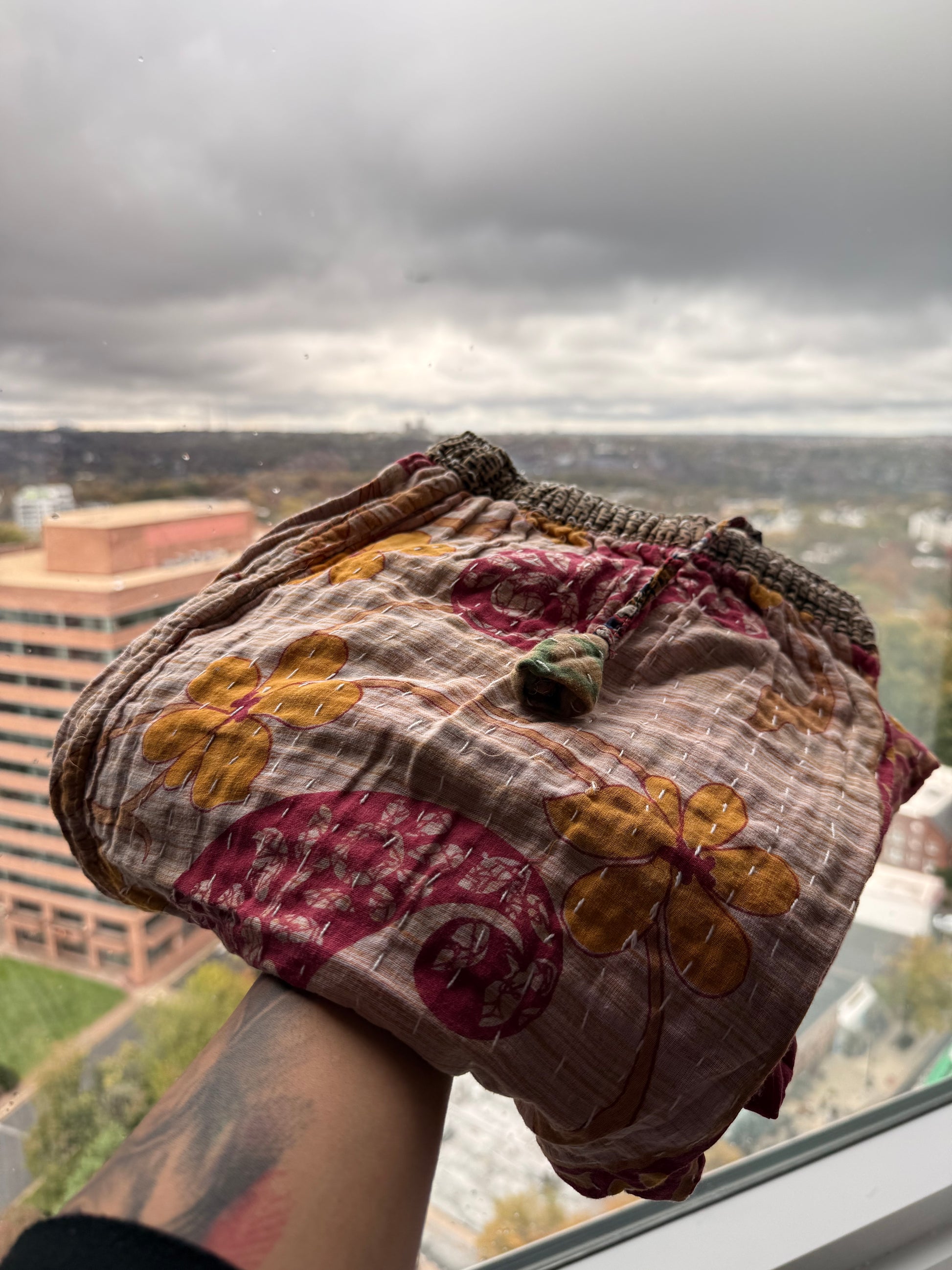 Slip into effortless comfort and one-of-a-kind style with our reversible Kantha lounge pants, made for cozy mornings, creative afternoons, and everything in between. Handcrafted from vintage, hand-stitched Kantha quilts, each pair carries its own story — full of texture, color, and character.