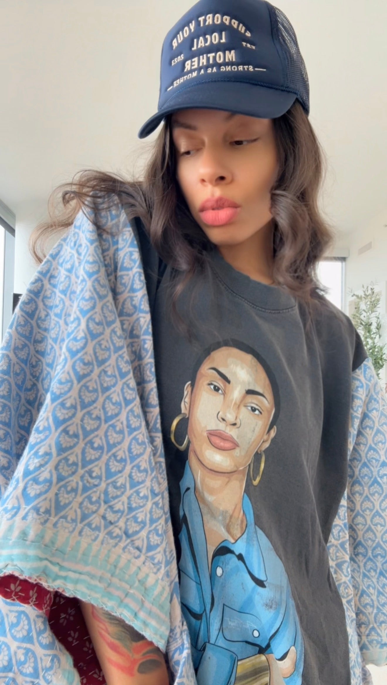 Each Kantha Band Tee Muu is a one-of-a-kind creation, handcrafted by combining iconic band tees with hand-stitched Kantha quilts. Designed for effortless style and ultimate comfort, this piece is a bold blend of edgy and earthy — perfect for those who want to stand out while keeping it laid-back.