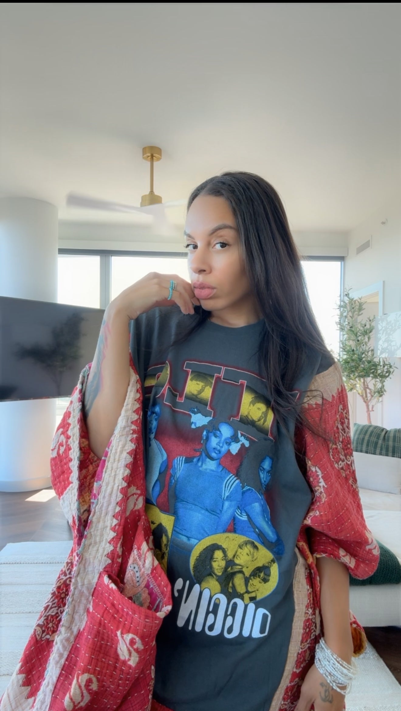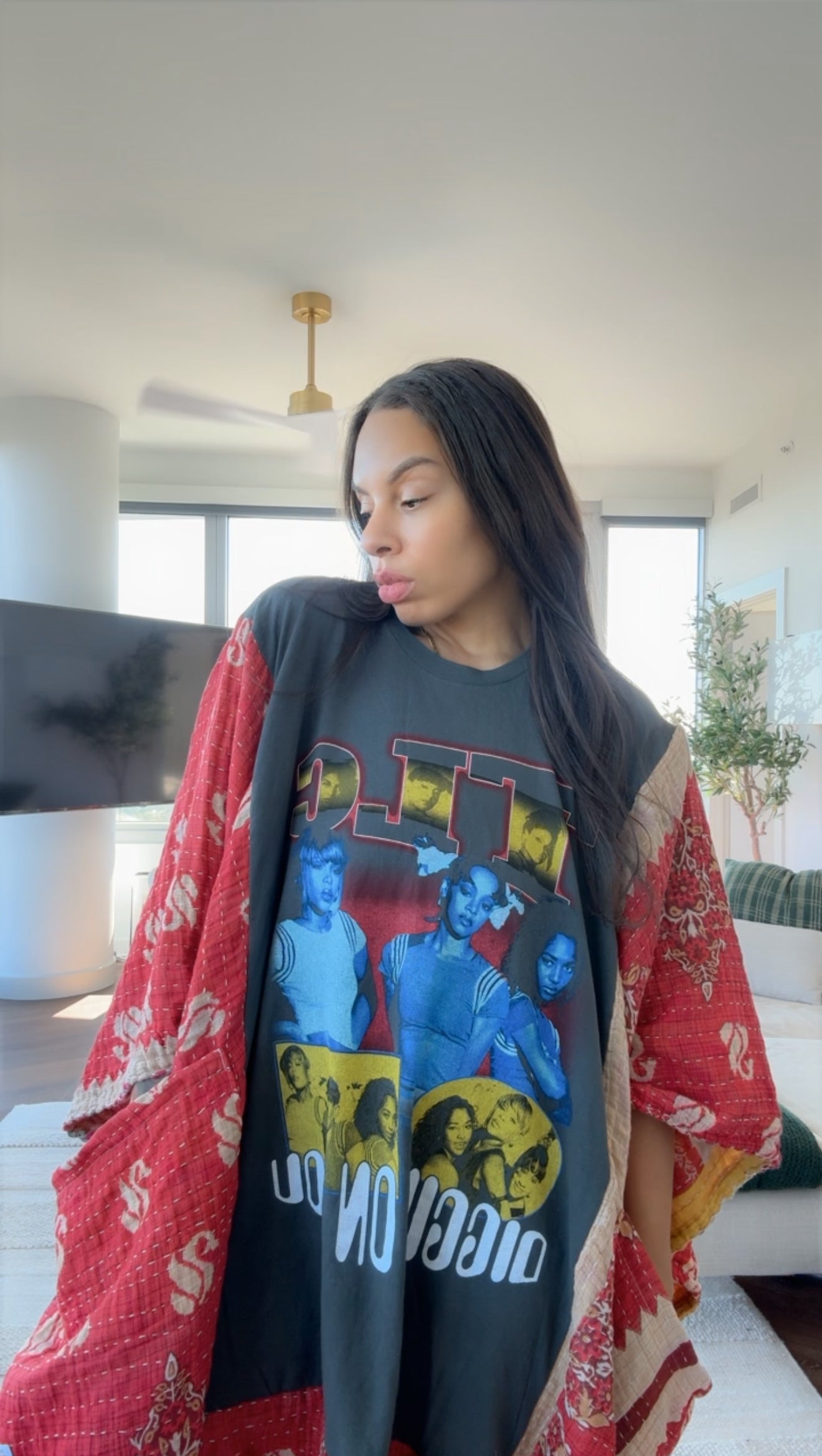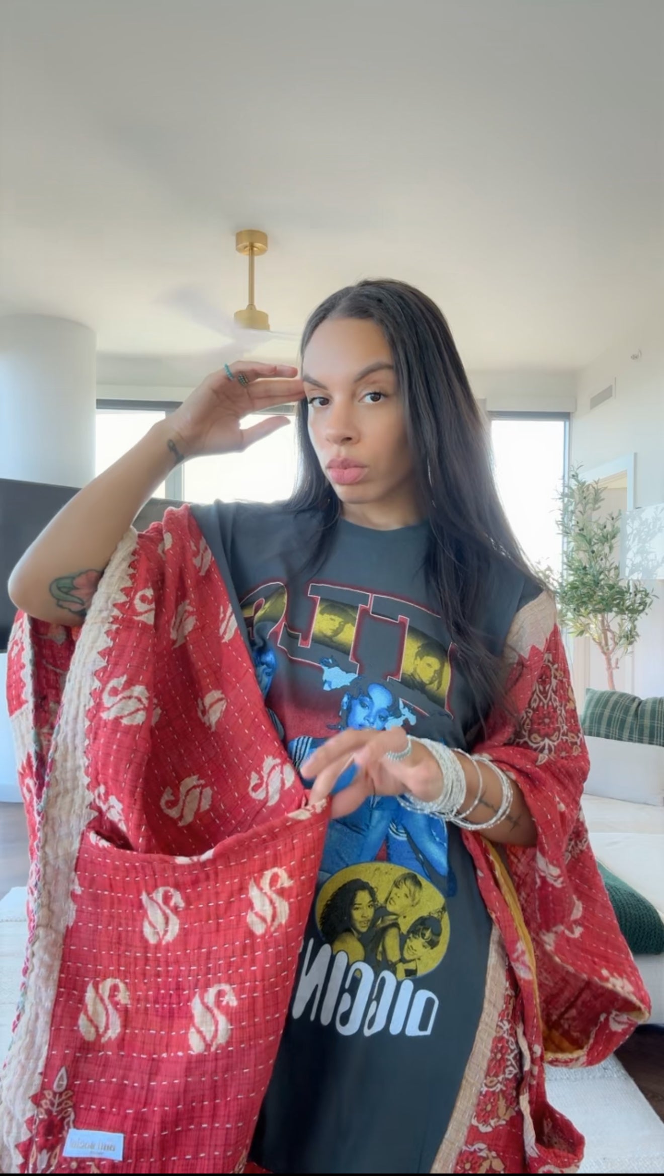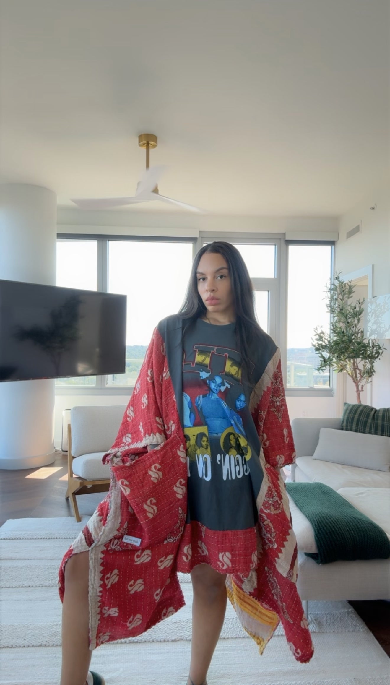 Each Kantha Band Tee Muu is a one-of-a-kind creation, handcrafted by combining iconic band tees with hand-stitched Kantha quilts. Designed for effortless style and ultimate comfort, this piece is a bold blend of edgy and earthy — perfect for those who want to stand out while keeping it laid-back.